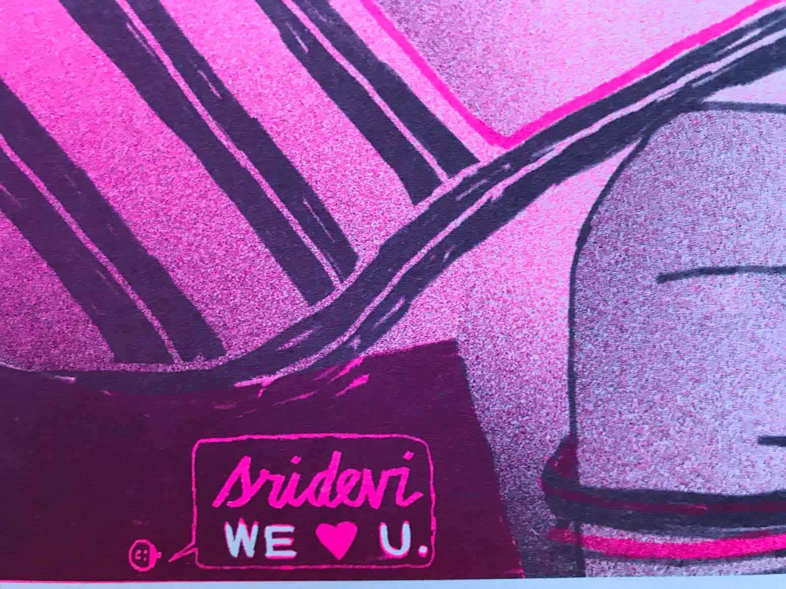 The printed poster features a small 'Sridevi WE <3 U.' message.
