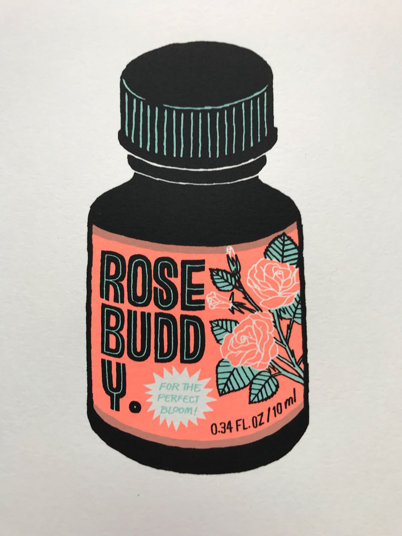 Rosebuddy, a tribute to poppers and blooming buds in every dungeon. Edition of 25.