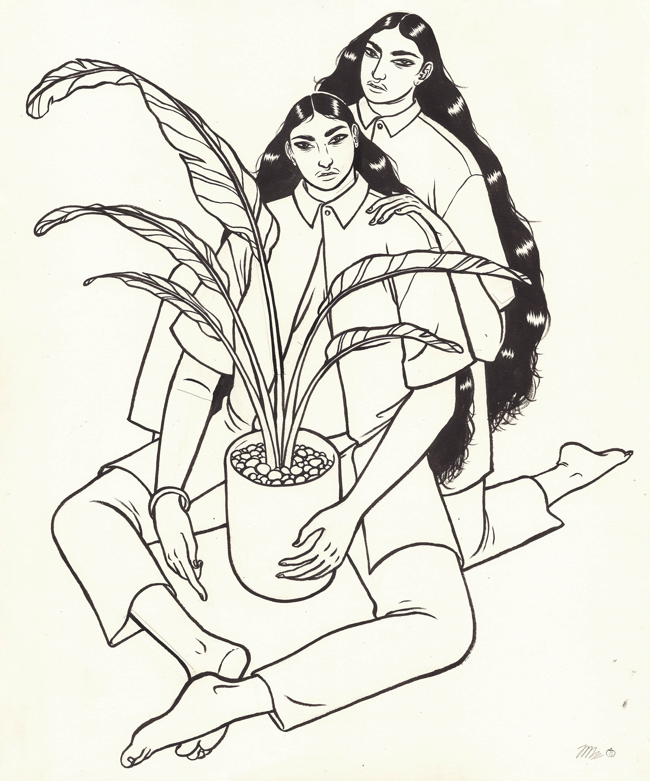 Original artwork for V R FAMILY, my tribute to queer people quarantined together; supporting, listening and taking care of each other as well as their beloved plants during 2020!
