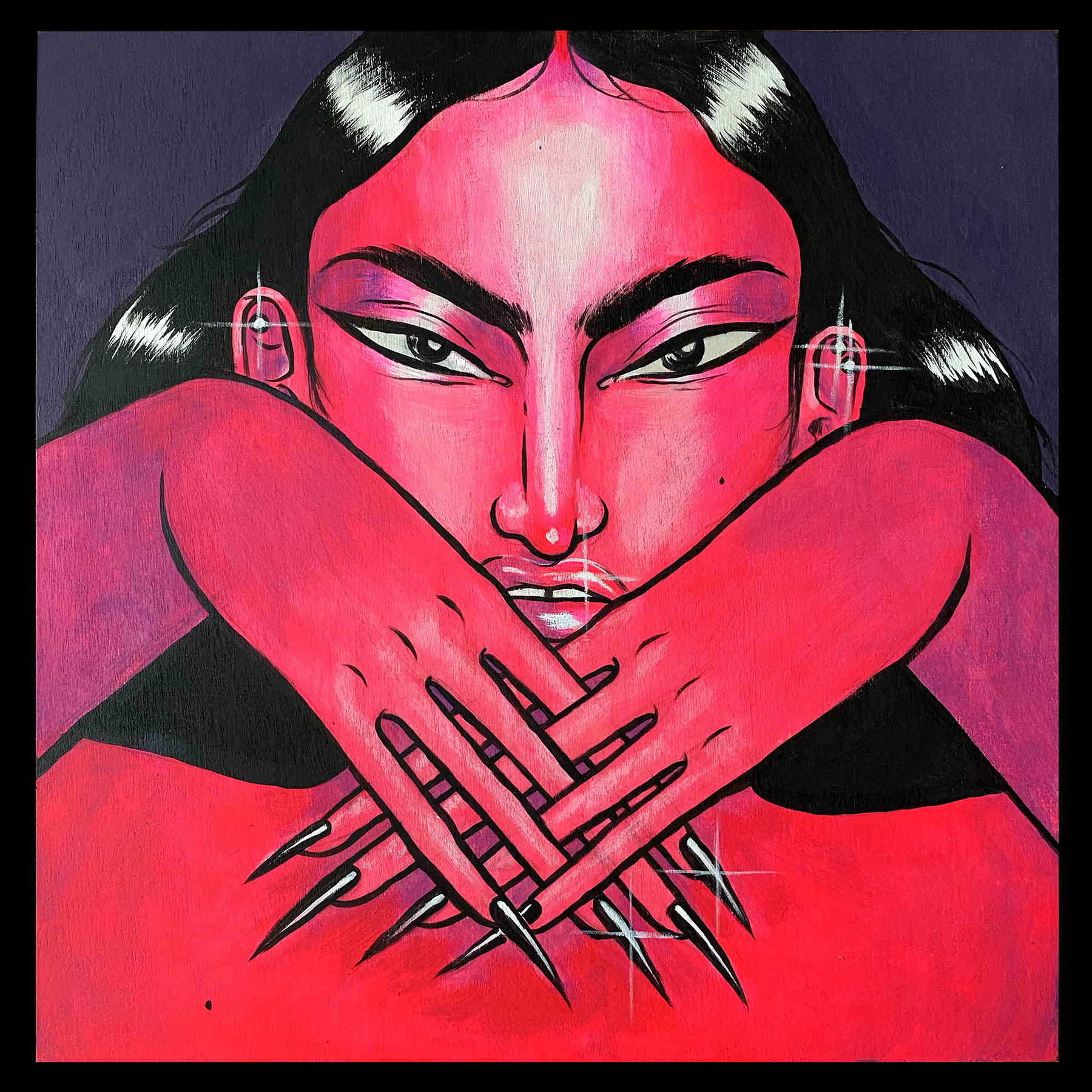 12 x 12 in Acrylic paint on birch panel 3/4 inch thickness Signed at the back