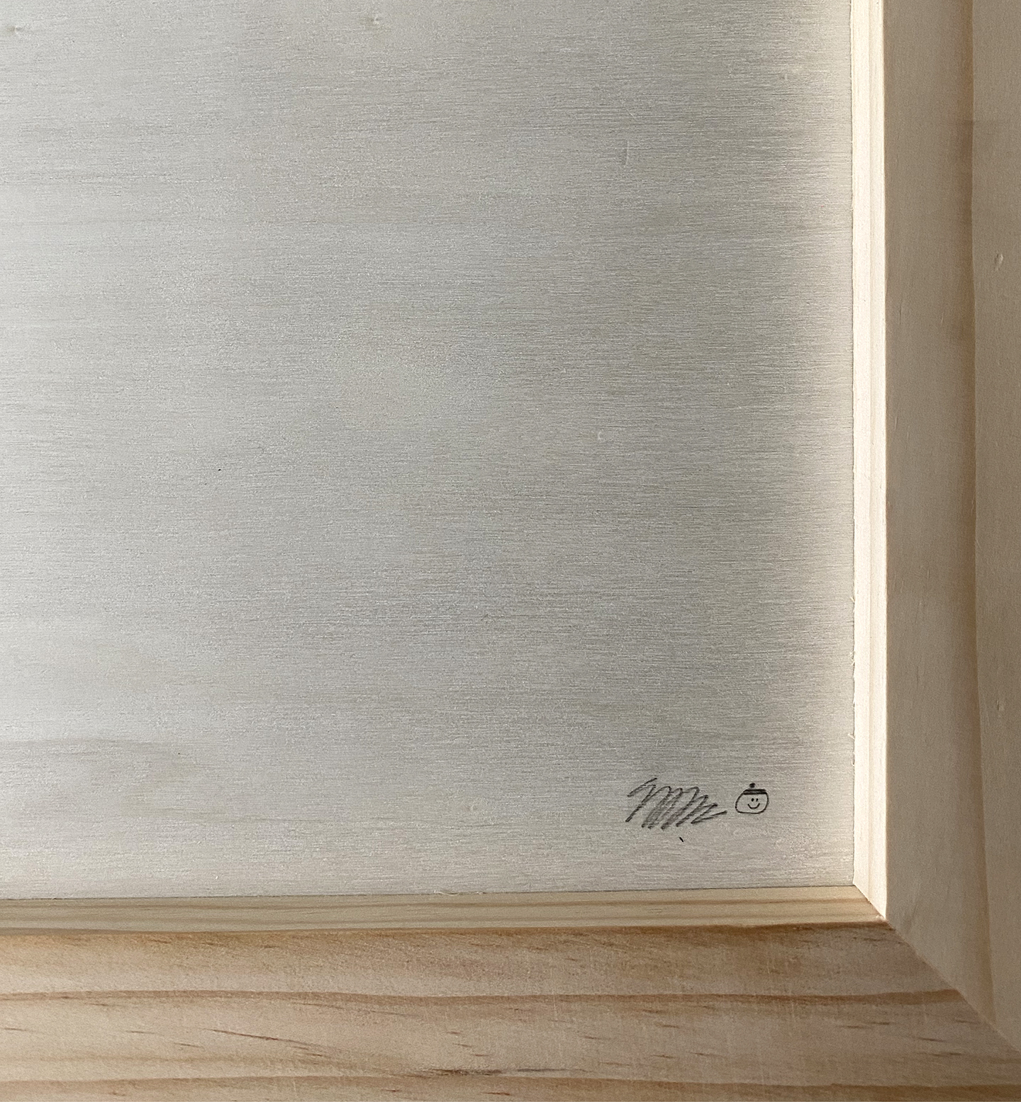 12 x 12 in Acrylic paint on birch panel, lavender painted edges 3/4 inch thickness Signed at the back