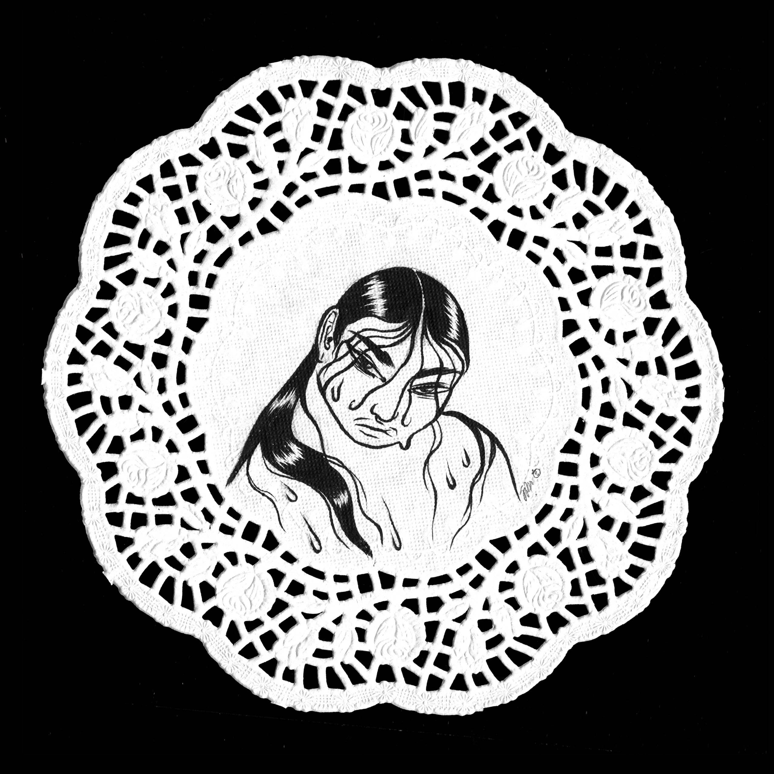 Pencil and ink on paper doily 7.5 inch diameter Signed by the artist Ships flat