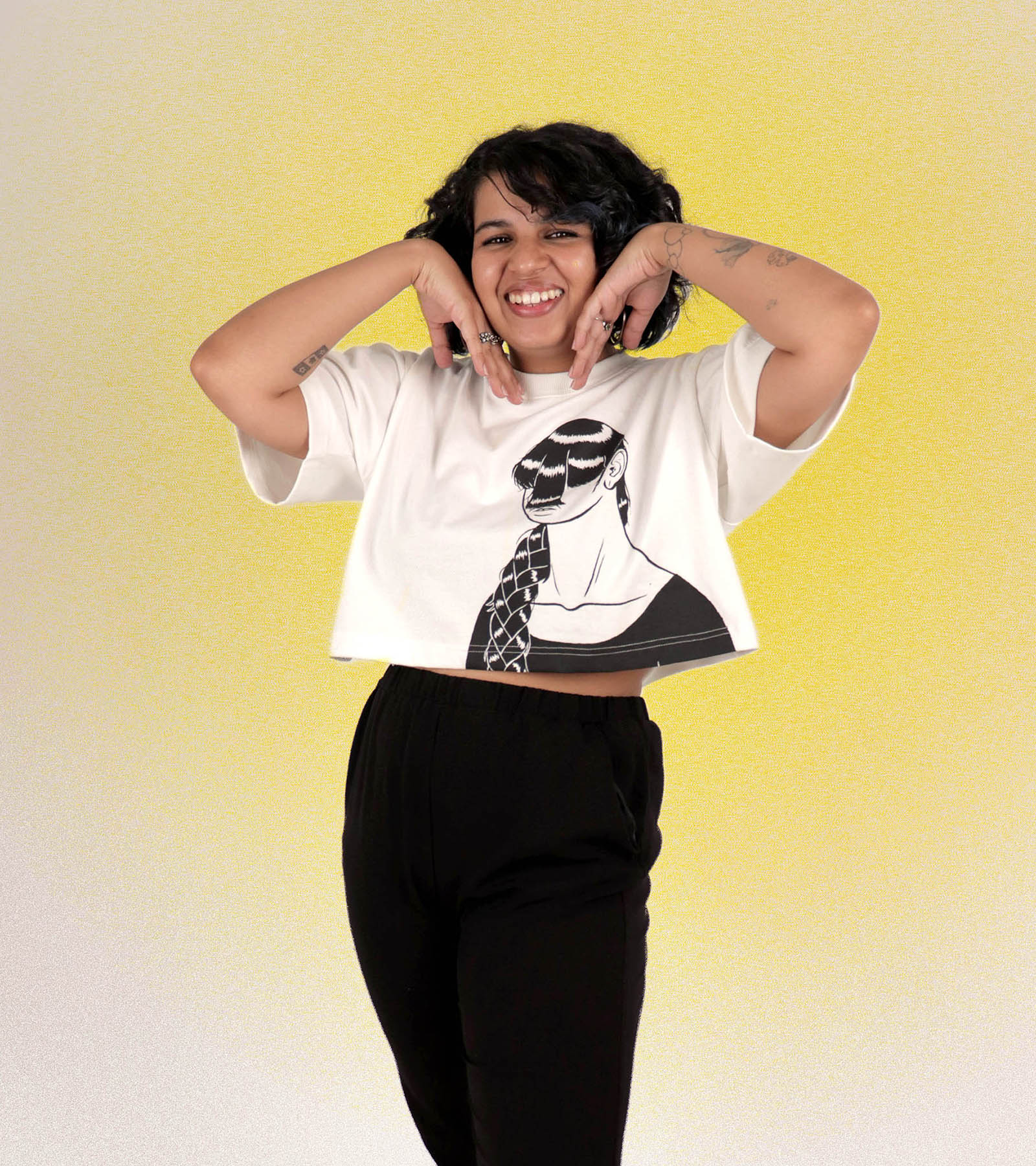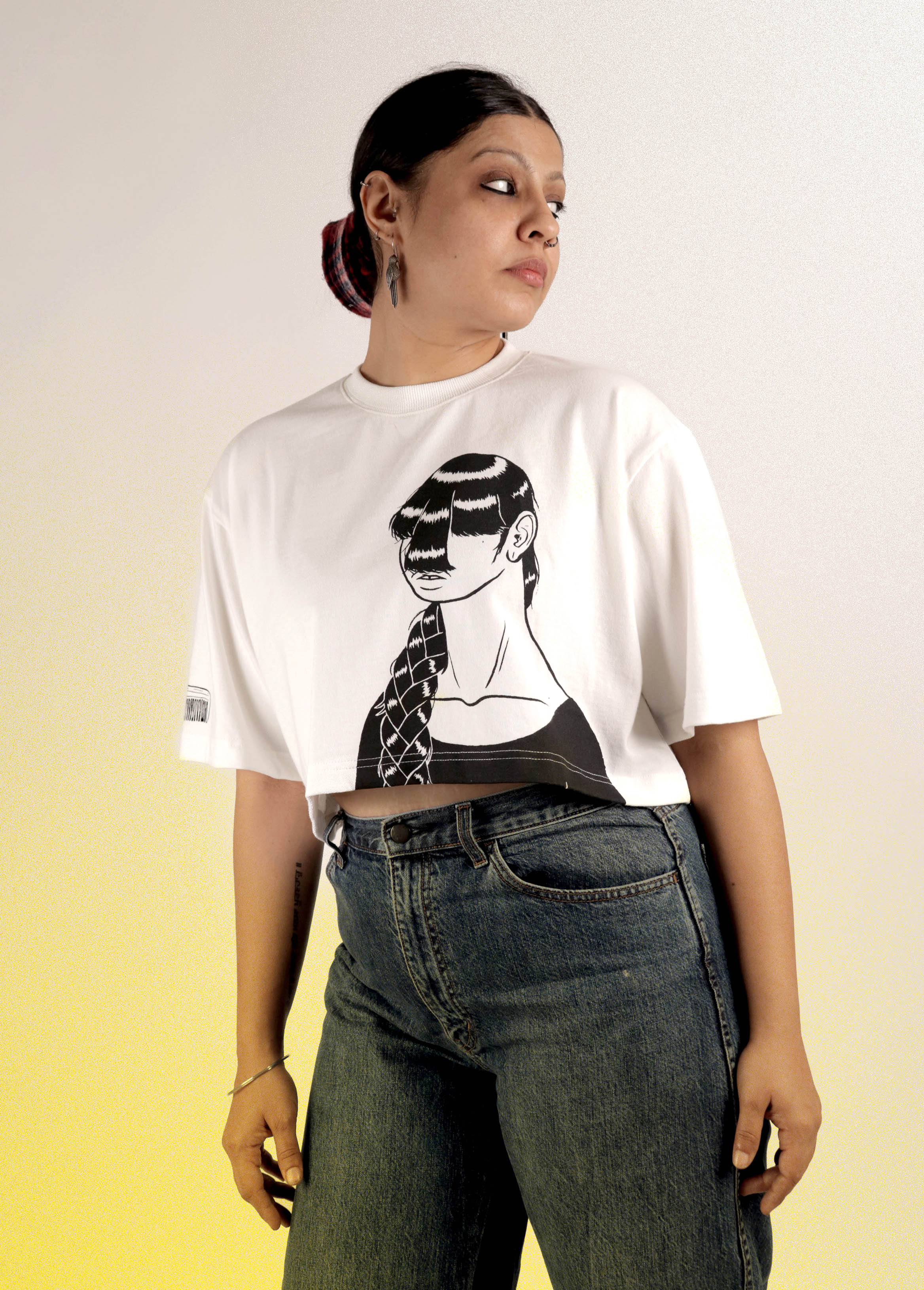 A white crop tee perfect for a sunny day out. BANGS is a gender neutral versatile top ( ;)))) ).